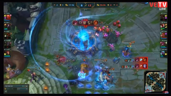 Vào phút thứ 11, tận dụng sau lần gank trước không thành của Blank, Kramer đã hết tất cả phép bổ trợ, Bang và Wolf mạnh dạn tung hết hỏa lực, lấy chiến công đầu về cho đội tuyển SKT.