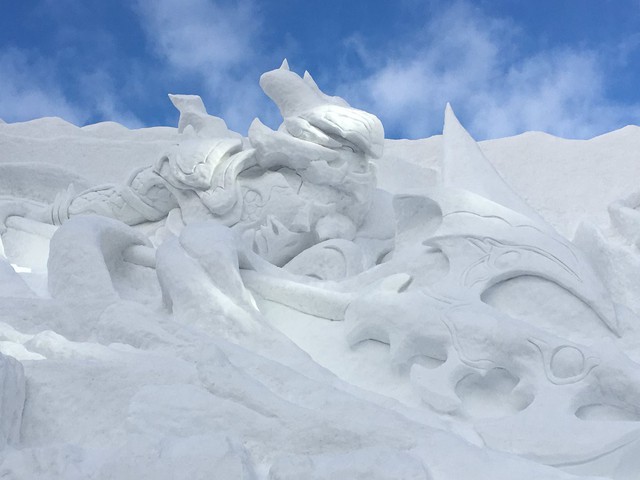 Hiệu ứng ánh sáng hoành tráng kết hợp cùng tác phẩm điêu khắc Final Fantasy XIV tinh xảo tạo ra khung cảnh không thể tuyệt vời hơn trong lễ hội Sapporo Snow Festival 2018