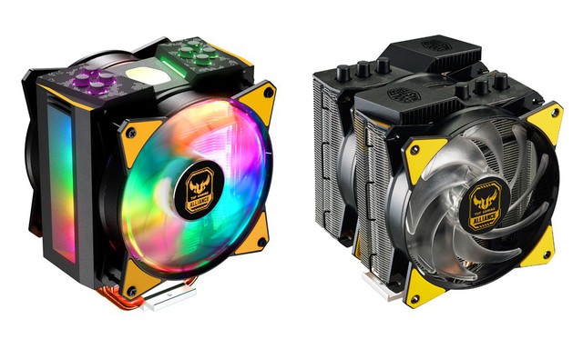 Cooler Master cũng giới thiệu hai bộ tản nhiệt phiên bản TUF Gaming Edition, là MasterAir MA410M và MasterAir MA410M. Cả hai bộ tản nhiệt này cũng sẽ có họa tiết Digital Camo ở mặt trên và được trang bị quạt đèn LED RGB thời thượng. Đèn RGB này có thể tùy chỉnh thông qua phần mềm ASUS Aura Sync hoặc với bộ điều khiển từ xa. Cả bộ tản nhiệt TUF Gaming Edition đều được trang bị hai quạt tản nhiệt.