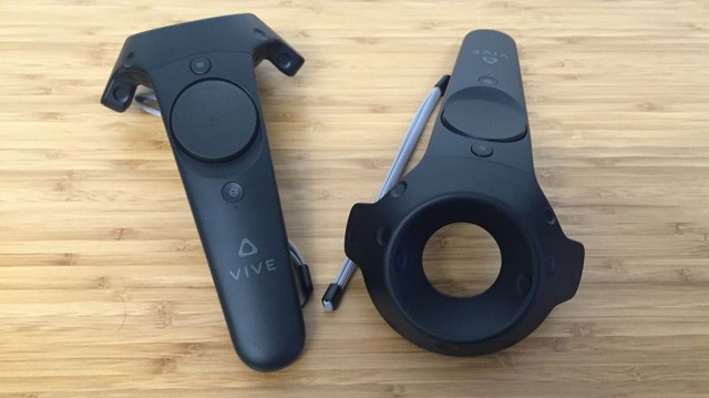 HTC Vive: Bộ thiết bị thực tế ảo HTC Vive đi kèm với hai chiếc tay cầm đặc trưng của bộ sản phẩm này và được thiết kế để sử dụng cùng với hệ thống camera mà chúng tôi đã nói ở trên. Và có vẻ như hai chiếc tay cầm này khá là giống những sản phẩm đến từ tương lai khi hầu hết đều sử dụng những bàn di cảm ứng để điều khiển cũng như hệ thống rung vật lý mà rất nhiều người khi sử dụng đều có một cảm giác giống như cánh tay được nối dài thêm ra chứ không phải là một chiếc tay cầm nữa.