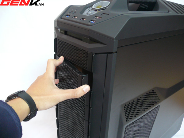 Thùng máy có 2 khoang dành cho ổ cứng HDD 3,5 inch (mỗi khoang chứa được 4 ổ), 1 khoang dành cho ổ cứng SSD 2,5 inch (chứa được 3 ổ) và 3 khoang dành cho các thiết bị 5,25 inch như DVD, Blu-ray hay thiết bị LCD cảm ứng nhiệt độ. Nếu không có nhu cầu sử dụng ổ SSD, người dùng có thể tháo bỏ khoang này.