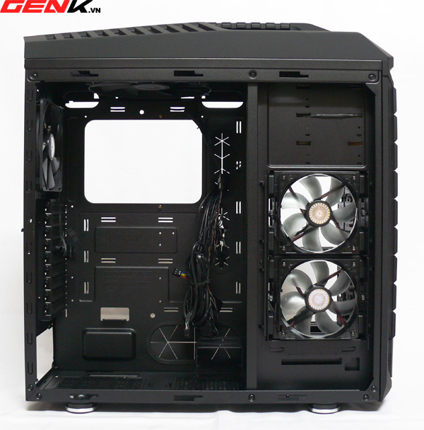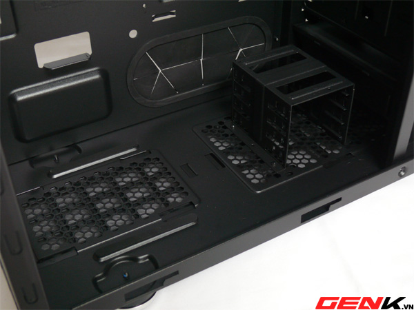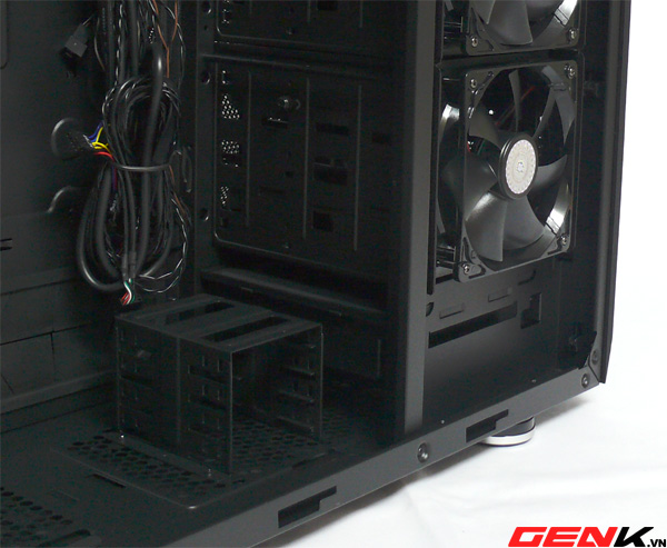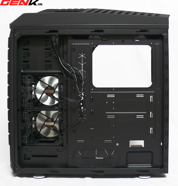 Lỗ đi dây rất lớn. Có thể lắp thêm quạt 120 mm ở đáy nếu tháo bỏ khoang 2,5 inch.