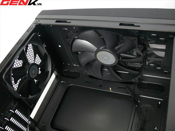 Ở trên nóc thùng máy, ngay phía dưới lớp vỏ là 1 quạt đẩy kích thước 200 mm được nhà sản xuất gắn sẵn. Quạt này được trang bị một lưới lọc có khả năng tháo lắp, vệ sinh cực kì dễ dàng. Bên dưới đáy có 2 lưới thông gió gắn sẵn lọc bụi: chiếc nhỏ hơn dành cho bộ nguồn; chiếc lớn hơn phục vụ lưu thông khí và có thể gắn 2 quạt 120 mm. Tuy nhiên 2 quạt này lại thốc thẳng lên các ổ HDD (không cần thiết) và có khả năng xung đột với lỗ giấu dây (dây nguồn vướng vào cánh quạt).