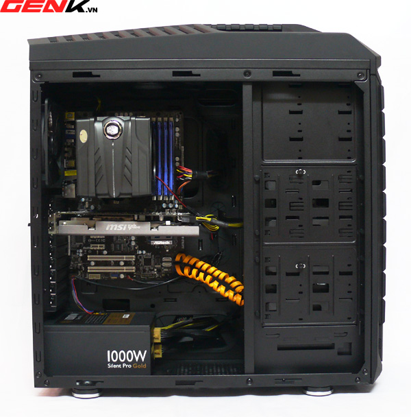 Nhờ kích thước rộng rãi ở cả khoang đi dây và khoang linh kiện, việc lắp đặt của tôi diễn ra rất nhanh chóng. Do không dùng đến ổ SSD nên tôi tháo bỏ khoang này cho thông thoáng.
