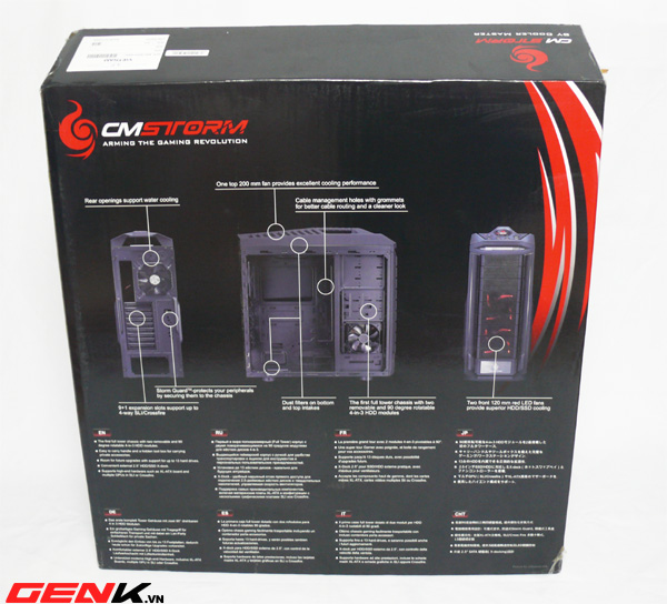 Không nghĩ rằng một sản phẩm tên tuổi như CM Storm lại có thể bất hợp lý như vậy, tôi lần mò nghiên cứu hồi lâu và phát hiện ra rằng: 2 khoang ổ cứng này có thể tháo rời hoặc xoay 90 độ, đưa 2 quạt làm mát về phía mặt trước, đúng theo nguyên tắc lưu thông khí. Công đoạn tháo lắp này khá phức tạp và phải tháo khá nhiều ốc vít. Người dùng nên tham khảo sách hướng dẫn để tránh làm hư hỏng thùng máy. Tôi hơi thắc mắc sao Cooler Maste không xoay hộ người dùng trước khi đóng hộp (khoe thiết kế độc đáo chăng).
