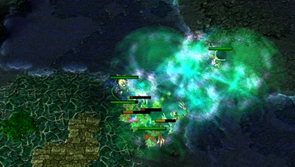 Hơn thế nữa, ưu việt hơn các skill AoE gây damage thường thấy khác, Nether Blast còn tác động được lên cả 2 xe của đoàn Creep (Glaive Thrower hay Meat Wagon). Đây là một điều rất tuyệt vời vì nhiều khi chúng ta rất khó để last hit được xe này (có thể do không quen ta thường tập trung last hit đàn Creep ít máu). Ngoài ra skill này của Pugna dùng để push hay last hit Tower cũng rất tốt.