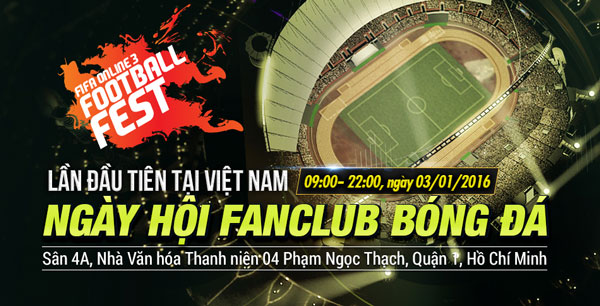 Một lựa chọn hay ho khác dành cho các bạn, đó là tham gia các hoạt động, các sự kiện lớn cho “khuây khỏa đầu óc”. Đối với game thủ FIFA Online 3 mà nói, nếu bạn ở TP. Hồ Chí Minh vào cuối tuần này thì từ 9h sáng đến 22h tối, có một sự kiện cực thú vị mà không thể bỏ lỡ: FOOTBALL FEST 2016 tại Nhà văn hóa Thanh niên, số 4 Phạm Ngọc Thạch, Q1, TP. HCM.
