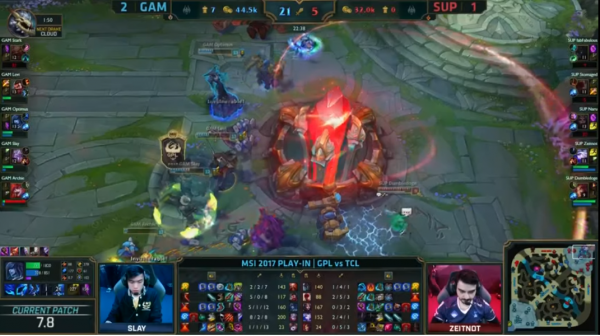 Phút 22, sau một tình huống cố gắng phòng ngự đường dưới nhưng không thành công, SUP đã phải bỏ lại cả 5 mạng và đây là một cơ hội không thể tốt hơn để GAM bỏ qua đường dưới, tiến thẳng vào đường giữa phá hủy các trụ bảo vệ và cả nhà chính của SUP. Có cho mình chiến thắng chung cuộc với tỉ số 3-1, GAM chính thức là đại diện cuối cùng góp mặt tại Vòng Bảng MSI 2017.