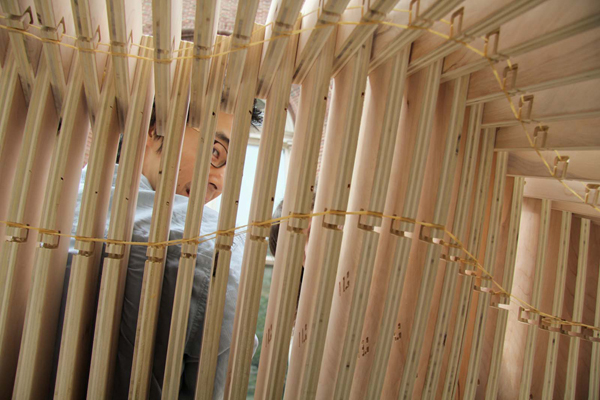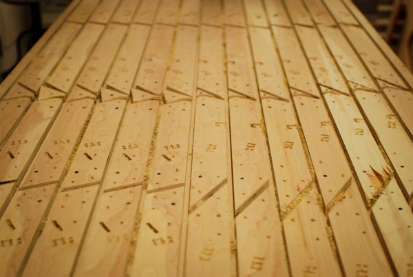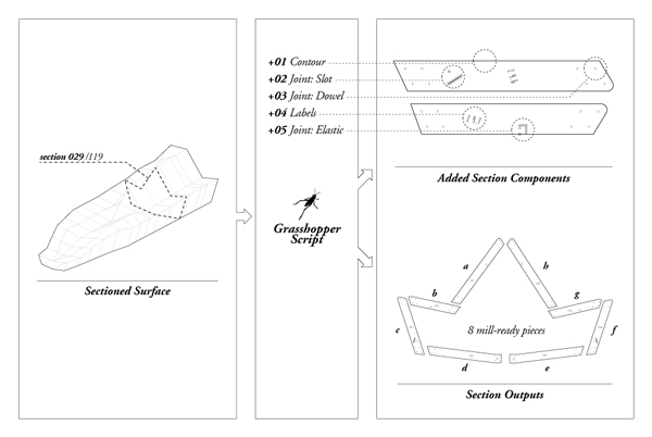 Không giống như việc sử dụng bản thảo chi tiết thiết kế thường thấy, Polymorphy sử dụng chính bản thảo gốc để sản xuất. Quá trình tự động được sử dụng như một công cụ để chuyển hình ảnh ảo thành đồ vật thật. Sau khi hoàn thành việc thiết kế, mô hình 3D sẽ được đưa vào để tạo ra 928 mảnh ghép cần thiết cho việc lắp ráp. Bản thảo Grasshopper không chỉ chịu trách nhiệm in ấn các biên dạng của hình mẫu, mà còn bao gồm cả 3 loại mối nối tương ứng cũng như hệ thống dán nhãn sản phẩm. Quá trình này làm tăng hiệu quả sản xuất của sản phẩm lên nhanh chóng, cũng như cho ra thành phẩm chính xác với bản thiết kế.