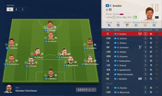 Đầu tiên chúng ta sẽ cùng xem qua đội hình của 2 Đội tuyển ngày hôm nay, có vẻ như nhìn sơ qua chúng ta đã biết, Nga chính là đội nhỉnh hơn về chỉ số của các cầu thủ trong đội hình, mức chỉ số trung bình toàn đội đạt đến (84 so với Ả rập chỉ (76).