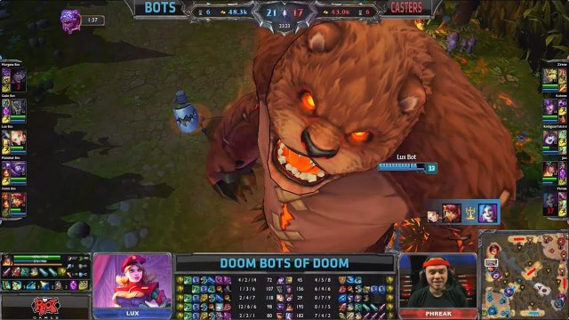 Doom Bots hay còn gọi là Máy Siêu Khủng Khiếp là chế độ chơi độc đáo mang tính thử thách rất cao, từng làm mưa làm gió Liên Minh Huyền Thoại vào 2 năm trước. Thay vì phải đối đầu với những người chơi khác như trong U.R.F . Ở đây họ sẽ phải đối đầu với những tướng do máy điều khiển ở mức độ Khó Siêu Khủng Khiếp, với bộ kĩ năng được điều chỉnh theo cách bá đạo nhất có thể.